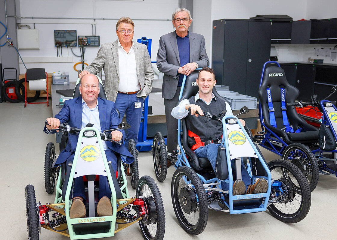 Zum anderen lernte sie auch Martin Jochum kennen, Geschäftsführer der J+F Group GmbH, deren Produktionsräume ebenfalls auf dem Gelände liegen. Gemeinsam mit den Ingenieuren der Holzer Gruppe entwickelt Martin Jochum seinen ESCALADOR weiter und macht ihn markttauglich. Günther Holzer erläutert, dass die Zusammenarbeit als Entwicklungspartner naheliegend war: